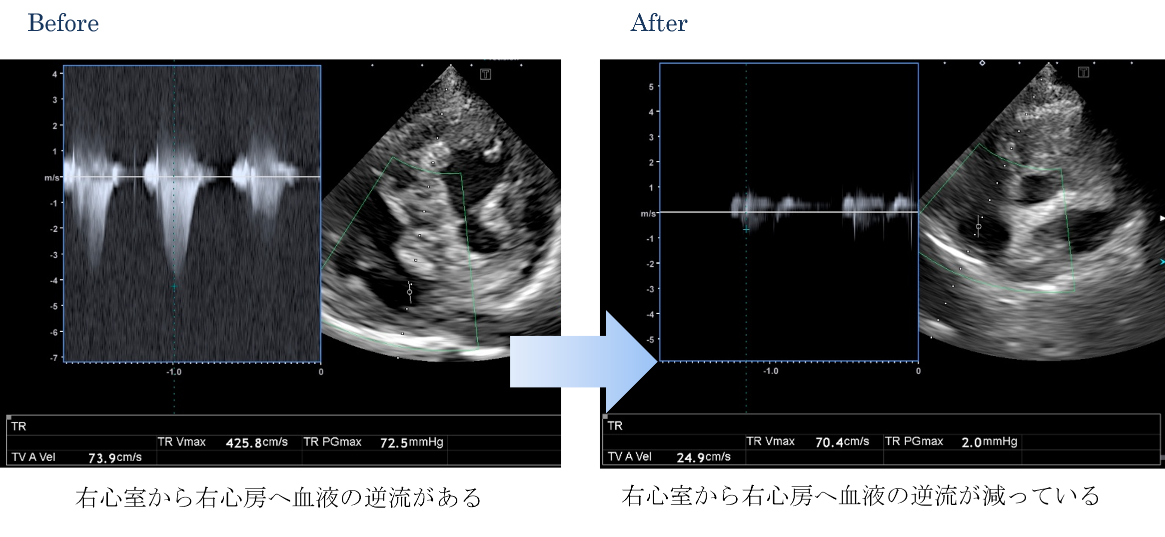 最近散歩に行きたがらなくなり呼吸が苦しくて咳もひどくなってきた【肺高血圧症】【 ご来院の理由 】 最近散歩に行きたがらなくなり、呼吸が苦しくて咳もひどくなってきた。 【 処 置 】 各種検査より、肺高血圧症と診断しました。 ご家族と相談した結果、ICUに入院して内科的治療(薬による治療)を行いました。 退院後は内服薬を継続してもらい元気に過ごすことができました。
