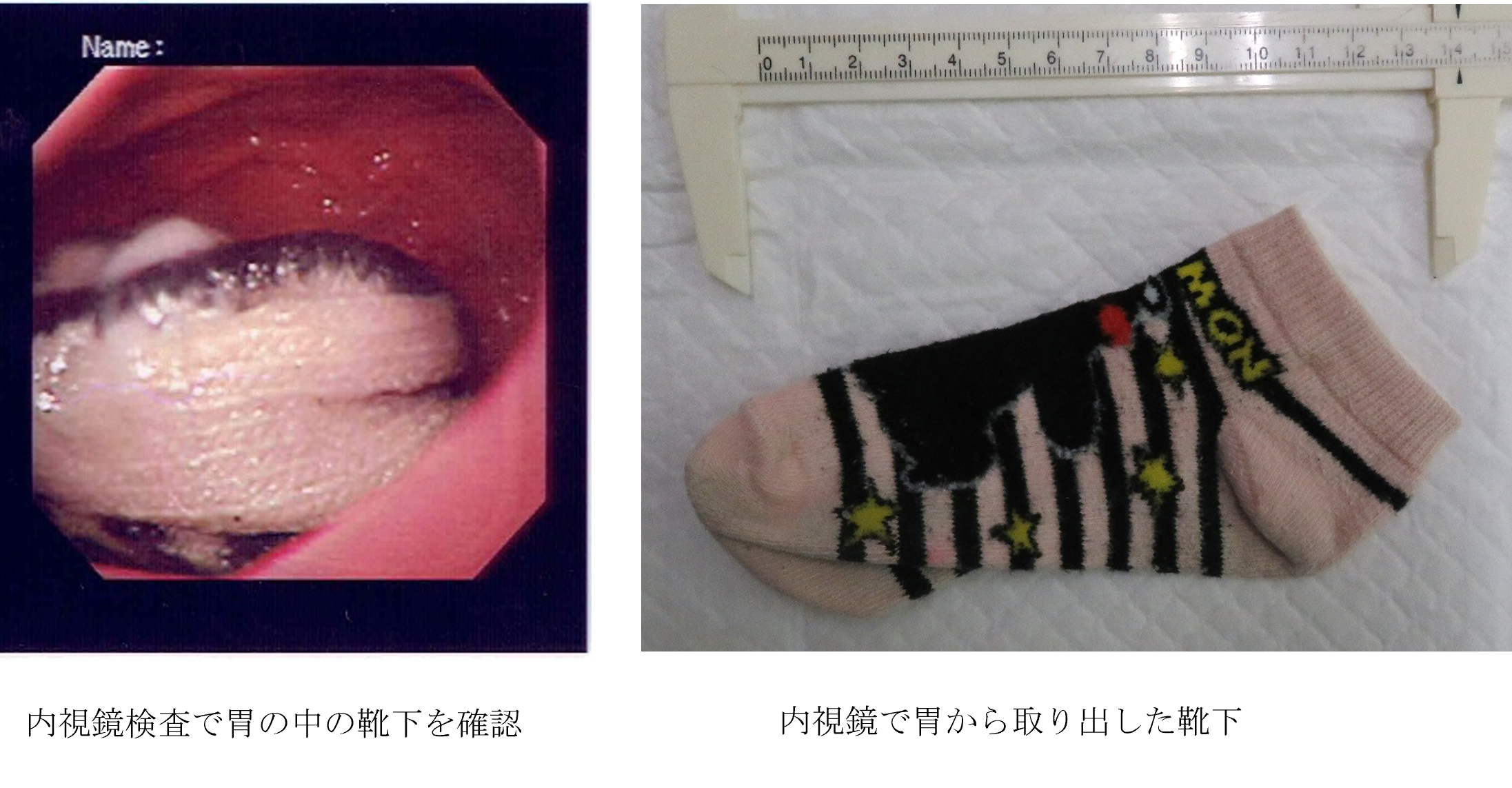 急に何度も吐いていて食欲がない【胃内異物】【 ご来院の理由 】 急に何度も吐いていて食欲がない。 【 処 置 】 各種検査より、胃内異物の閉塞と診断しました。 ご家族と相談した結果、内視鏡による胃の中の異物の除去をすることになりました。 内視鏡では胃の中に靴下があることを確認しました。 異物の除去後は吐き気もなく、元気に食事ができるようになりました。