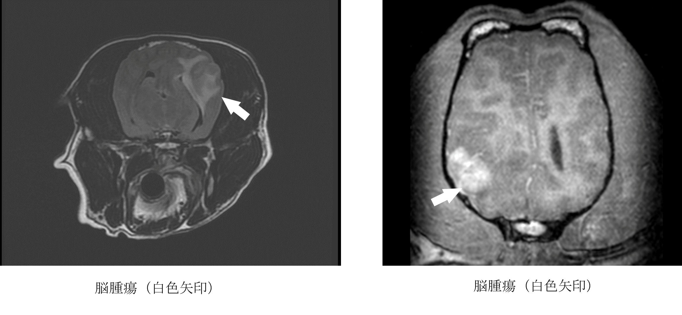 夜中に急に倒れて足を突っ張るような発作を起こしてしまった【脳腫瘍】【 ご来院の理由 】 夜中に急に倒れて足を突っ張るような発作を起こしてしまった。 【 処 置 】 各種検査より、頭蓋内による発作の可能性が高いためMRI検査が重要と判断しました。 ご家族と相談した結果、MRIおよび脳脊髄液の検査を行いました。 MRIおよび脳脊髄液検査より脳腫瘍(組織球肉腫)と診断し、化学療法および抗てんかん薬を行いました。 ※備 考 犬の特発性てんかんは1〜5歳の間に発症することが多く、それ以上の年齢であれば、脳に何らかの進行性の病気がある可能性が高くなります。