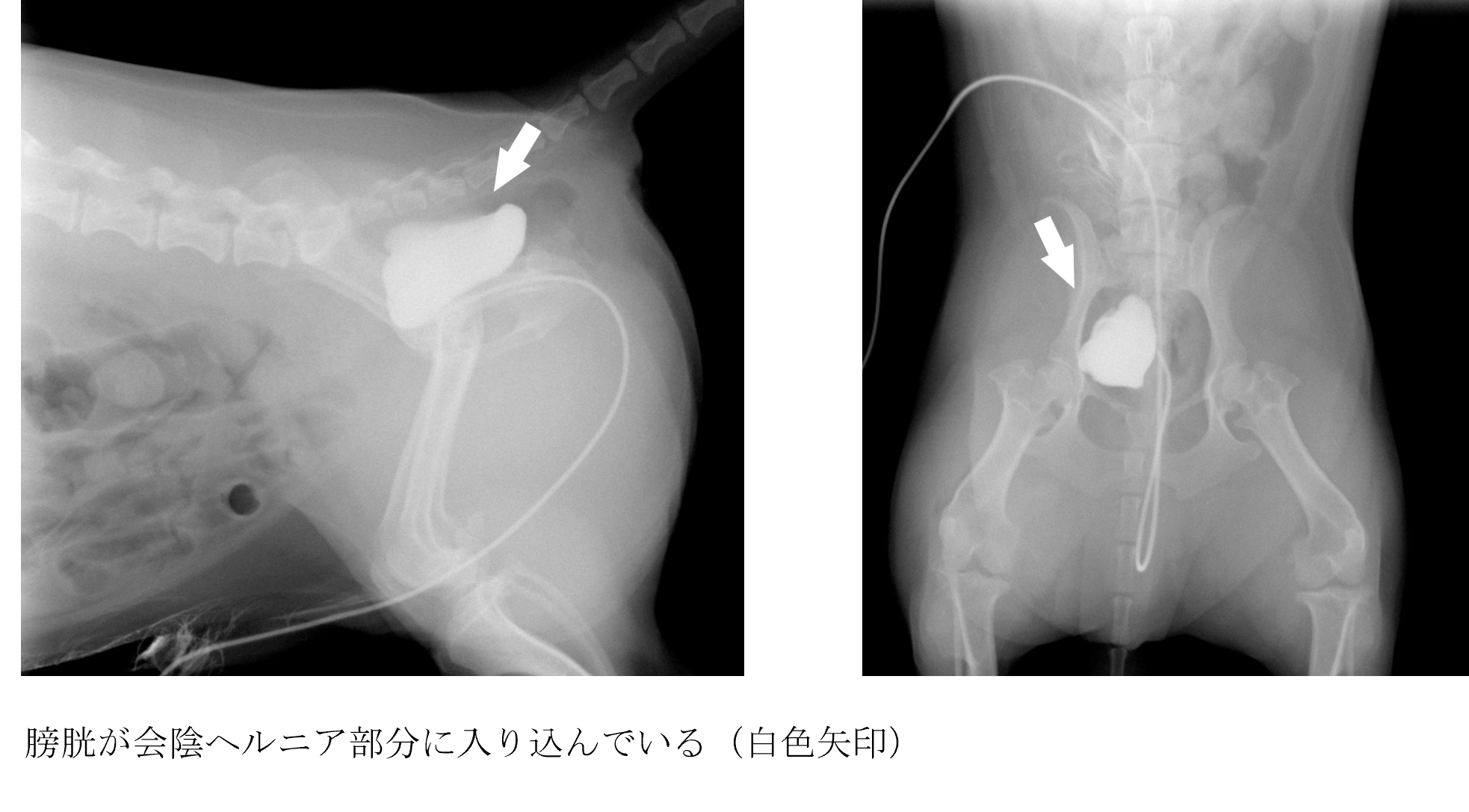 急におしっこをしようとするが尿が出なく元気がない【会陰ヘルニア(膀胱反転)】【 ご来院の理由 】 急におしっこをしようとするが尿が出なく元気がない。 【 処 置 】 各種検査より会陰ヘルニア部分に膀胱が入ってしまったことによる排尿障害と診断しました。 相談した結果、膀胱の整復、会陰ヘルニアの整復、直腸固定・精管固定をする手術になりました。 術後は排尿も排便もスムーズになり元気になり、犬ちゃんも大喜びでした。