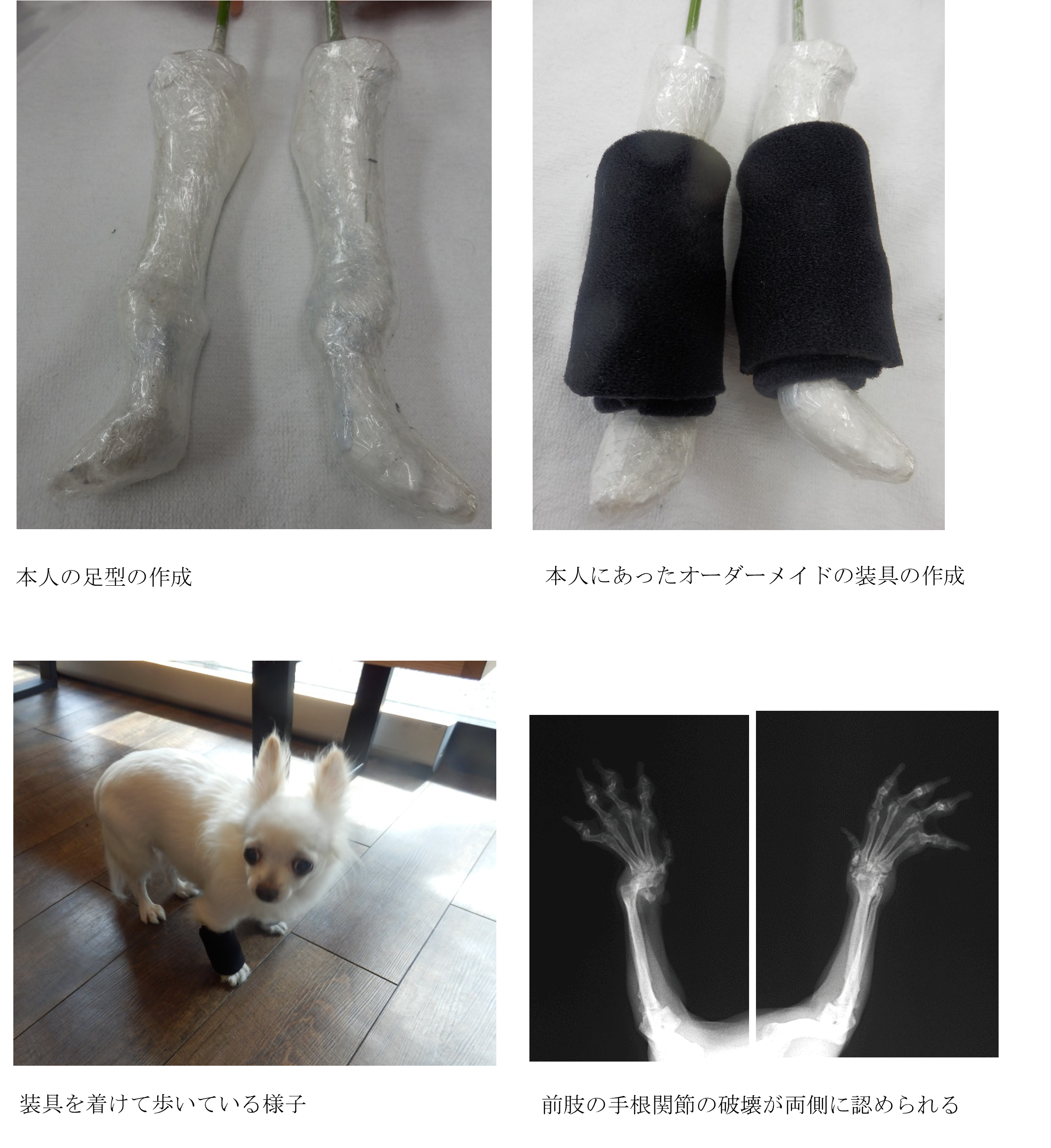 装具を付けたことにより関節が固定され、今まで歩くことが困難だったワンちゃんがスムーズに歩くことが出来るようになりご家族もワンちゃんも大喜びでした。